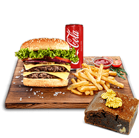 1 Burger au choix + Frites + 1 Dessert au choix + 1 Boisson 33cl au choix.